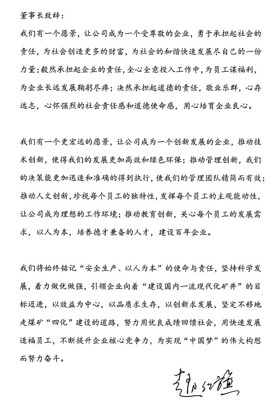 陝西銀河煤業開發有限公司-董事長致辭