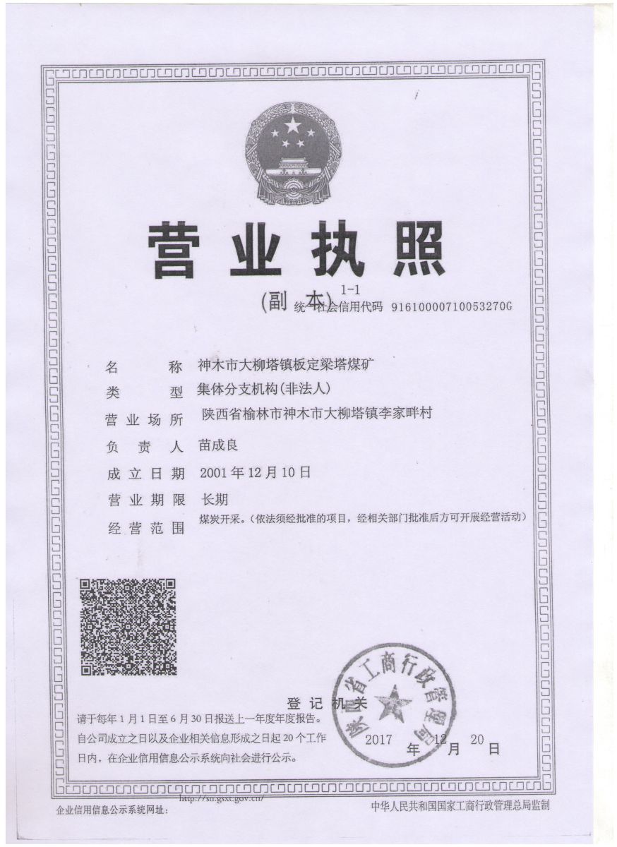 神木中雞鎮板定梁塔煤礦