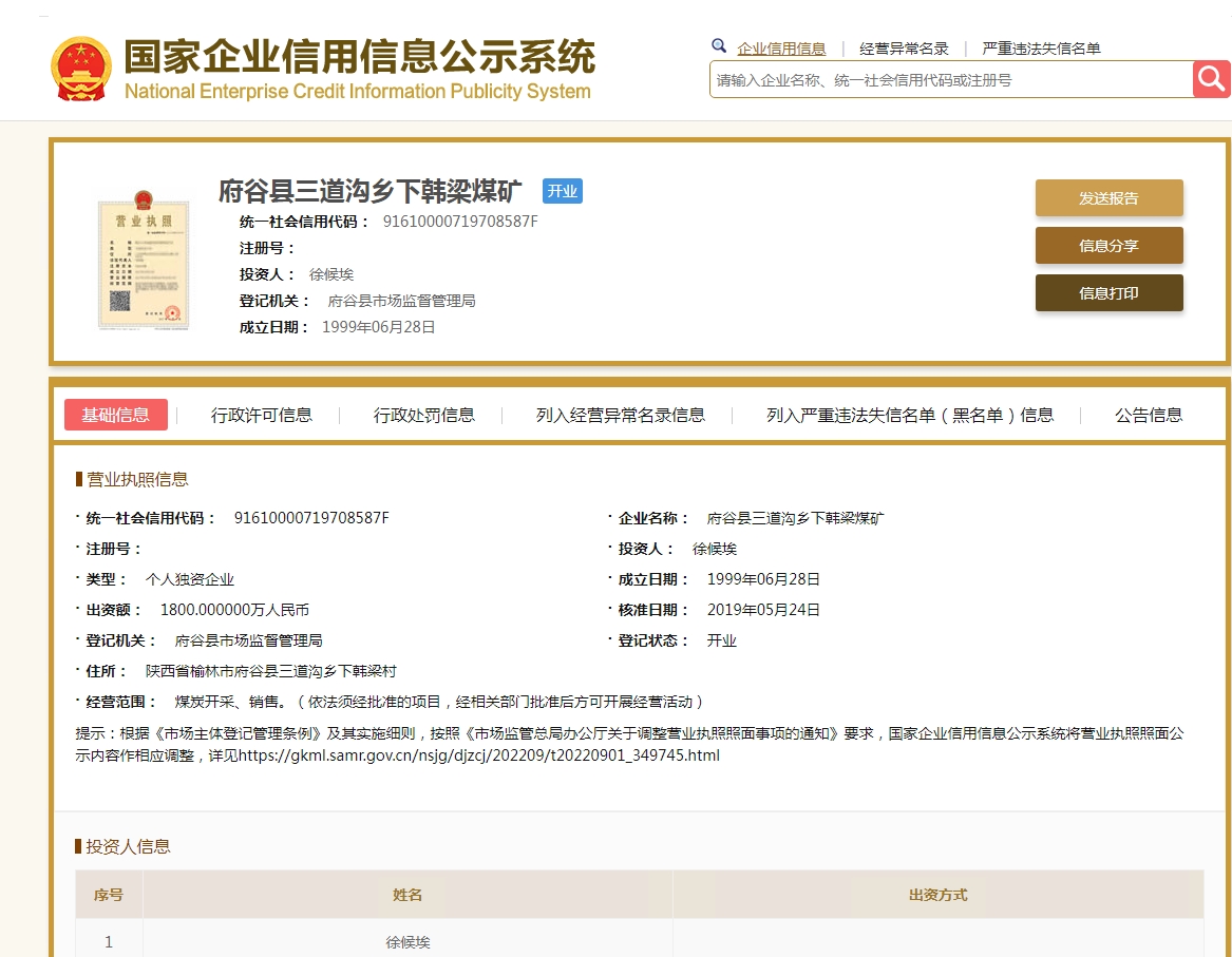 府穀縣三道溝鄉下韓梁煤礦
