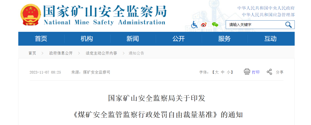 原國家煤礦安全監察局印發的《煤礦安全監察行政處罰自由裁量基準》(煤安監監察〔2018〕36號)同時廢止。