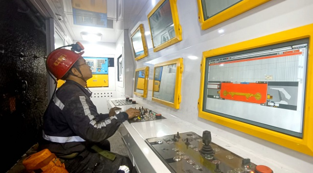 9303綜放工作麵是該公司9號煤層建成的第二個智能化工作麵,采用全部垮落法采煤工藝開采,具備全設備一鍵啟停控製、遠程割煤放煤、自動拉架推溜、自(zi)動(dong)供(gong)液(ye)配(pei)液(ye)及(ji)故(gu)障(zhang)檢(jian)測(ce)功(gong)能(neng)。該(gai)公(gong)司(si)對(dui)標(biao)智(zhi)能(neng)化(hua)工(gong)作(zuo)麵(mian)建(jian)設(she)相(xiang)關(guan)標(biao)準(zhun),結(jie)合(he)工(gong)作(zuo)麵(mian)條(tiao)件(jian)配(pei)套(tao)全(quan)新(xin)係(xi)列(lie)智(zhi)能(neng)化(hua)回(hui)采(cai)設(she)備(bei)。這(zhe)套(tao)設(she)備(bei)截(jie)割(ge)高(gao)度(du)為(wei)2.6-4.6米,能適應不同煤層厚度要求,智能化程度高,傳感器和監測係統完善,實現了全工藝智能化割煤。變頻刮板輸送機、轉載機、錘chui式shi破po碎sui機ji在zai輸shu送song機ji正zheng常chang運yun行xing時shi可ke自zi動dong調tiao整zheng鏈lian條tiao張zhang力li,保bao證zheng鏈lian條tiao張zhang緊jin適shi度du,實shi現xian工gong況kuang實shi時shi傳chuan回hui集ji控kong室shi。工gong作zuo麵mian支zhi架jia具ju備bei智zhi能neng化hua放fang煤mei功gong能neng,通tong過guo程cheng序xu實shi現xian自zi動dong粗cu放fang和he人ren工gong遙yao控kong幹gan預yu精jing放fang,通tong過guo遠yuan程cheng操cao作zuo實shi現xian支zhi架jia自zi動dong調tiao直zhi、成組自動移架和推溜,兩巷超前支架和設備列車段均實現集成自動推移,液壓支架可與采煤機、刮板機配合進行自動割煤,多種傳感器實現全姿態工況監測。5G信(xin)號(hao)覆(fu)蓋(gai)了(le)整(zheng)個(ge)工(gong)作(zuo)麵(mian),用(yong)於(yu)工(gong)作(zuo)麵(mian)設(she)備(bei)數(shu)據(ju)參(can)數(shu)的(de)無(wu)線(xian)傳(chuan)輸(shu)接(jie)收(shou)和(he)交(jiao)互(hu)上(shang)傳(chuan),實(shi)現(xian)地(di)麵(mian)井(jing)下(xia)同(tong)步(bu)實(shi)時(shi)監(jian)控(kong),提(ti)高(gao)了(le)生(sheng)產(chan)效(xiao)率(lv),強(qiang)化(hua)了(le)安(an)全(quan)保(bao)障(zhang)。