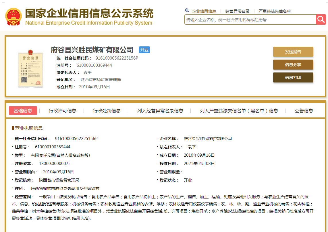 府穀縣興勝民煤礦有限公司